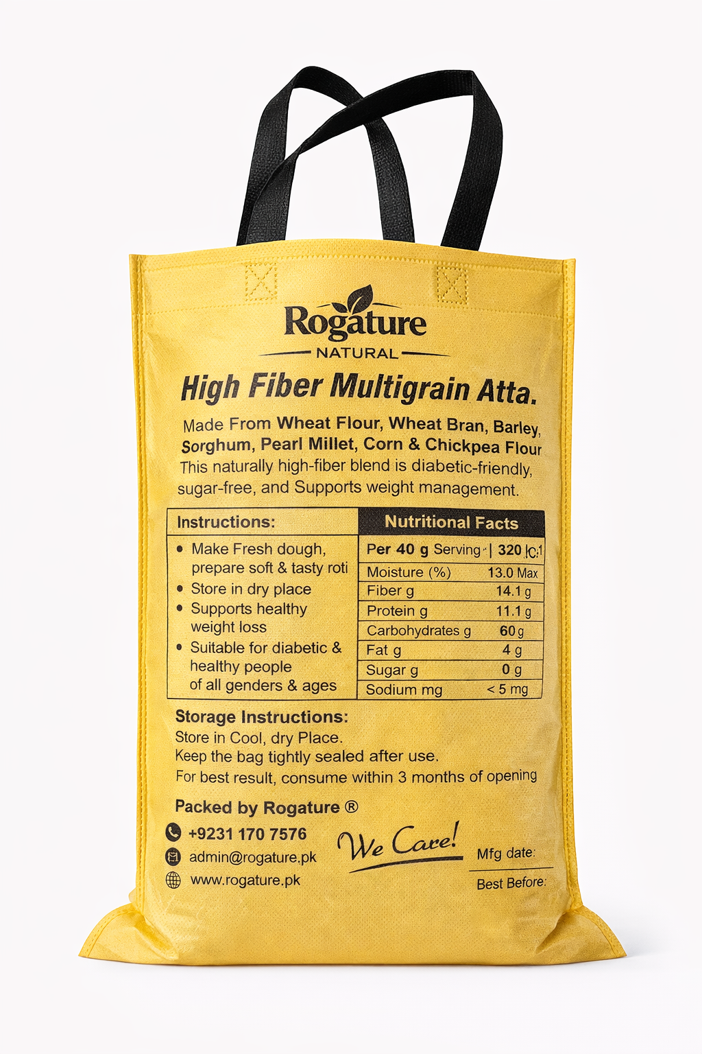 Rogature Premium Multigrain Flour is a carefully balanced blend of 11 natural ingredients, stone-ground to preserve fiber, texture, and authentic nutrition.